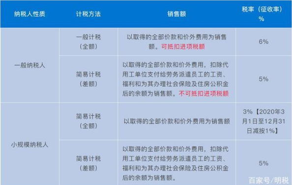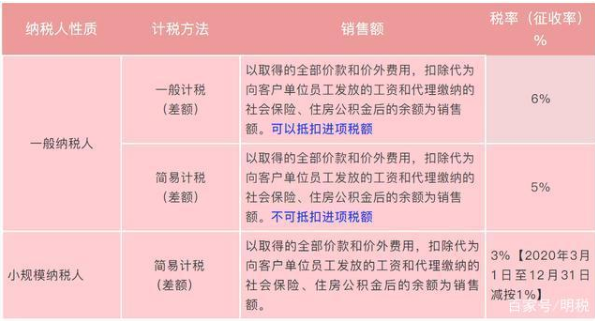 人力資源外包計稅方法、銷售額、稅率(征收率)