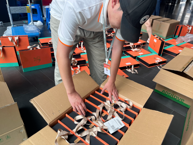 8月26日,公司為大家訂購的中秋月餅早早便到了,因為今年新增了家書環(huán)節(jié),加上那段時間成都高溫限電,所以大家不得不頂著體感45度的高溫,挨個重新打開包裝再次進(jìn)行包裝。